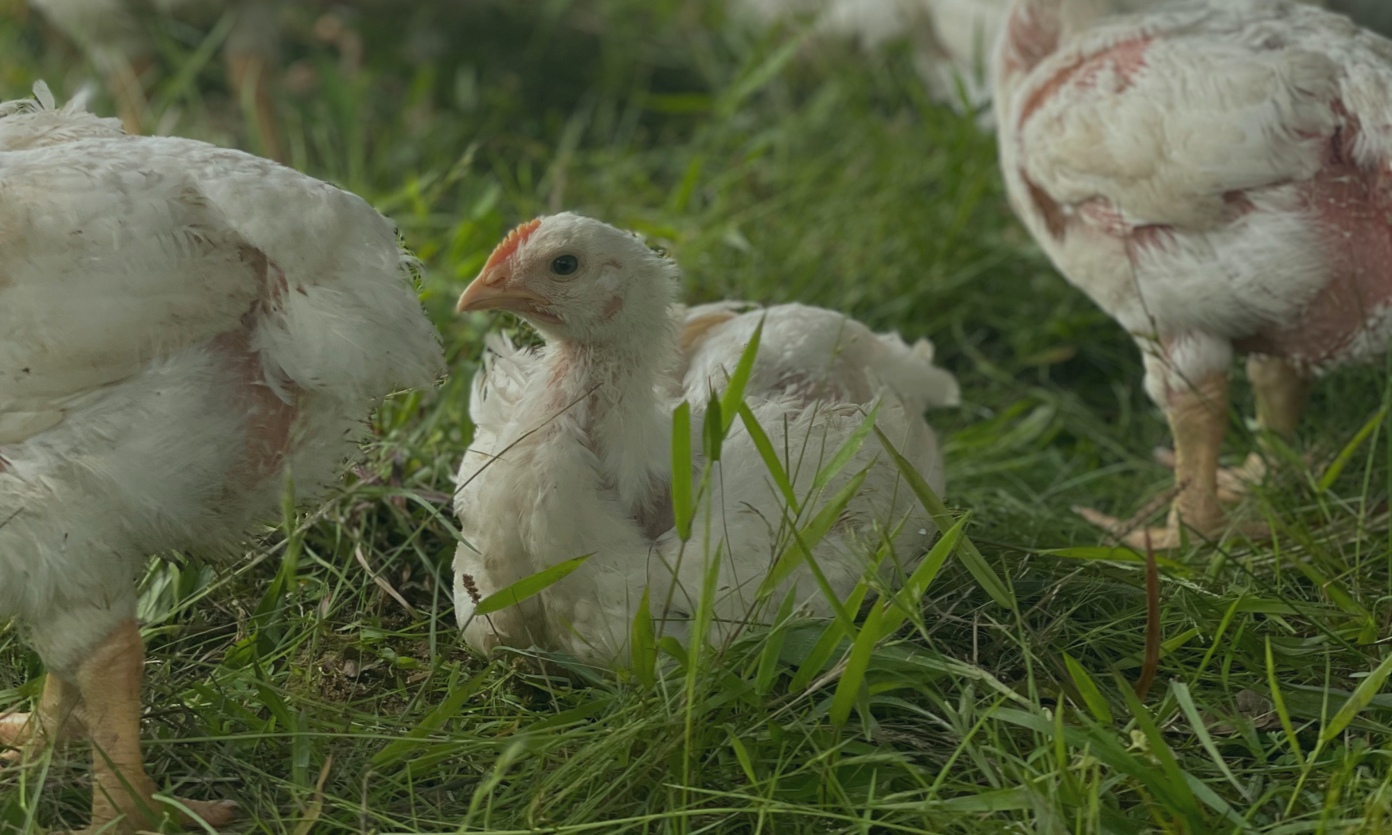 Our whole roaster chickens are pasture raised in mobile field shelters, allowing for movement, diverse forage, and natural, healthy growth.